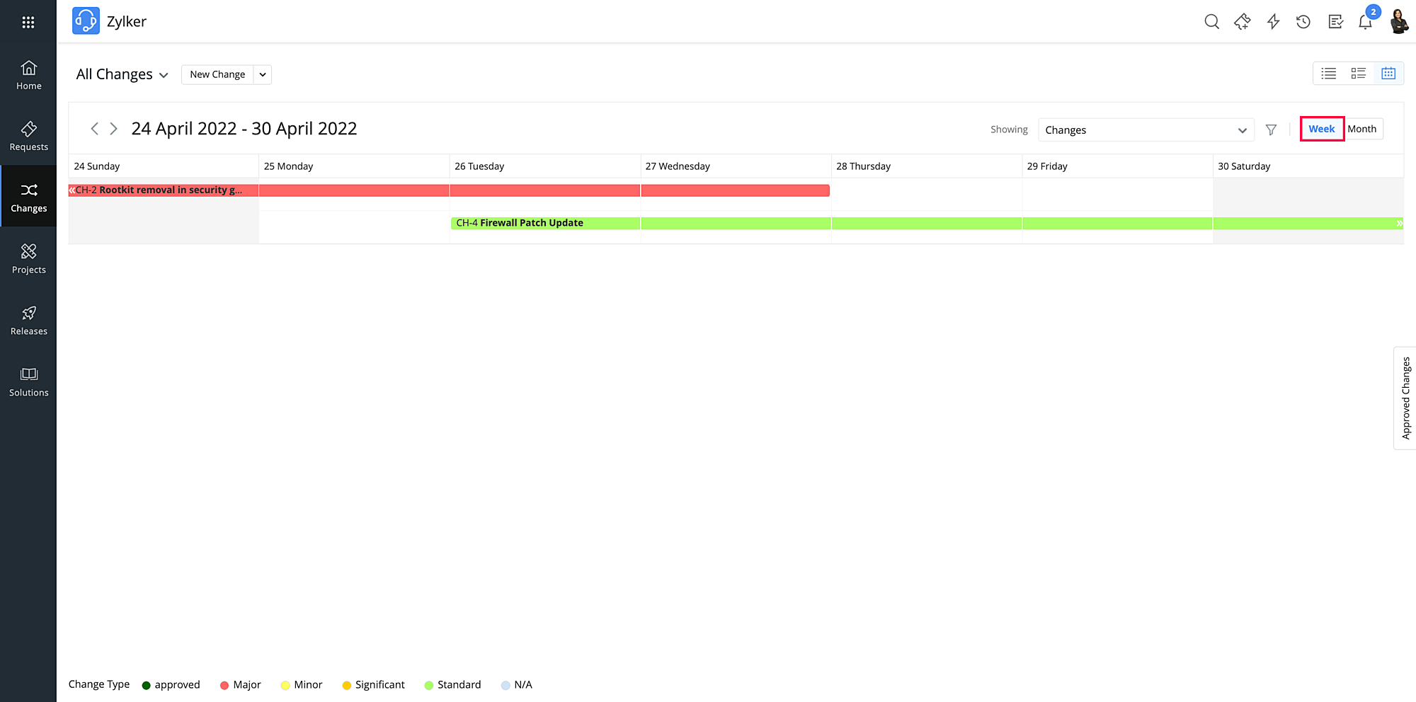To open the details page of a change, click any of the change requests.